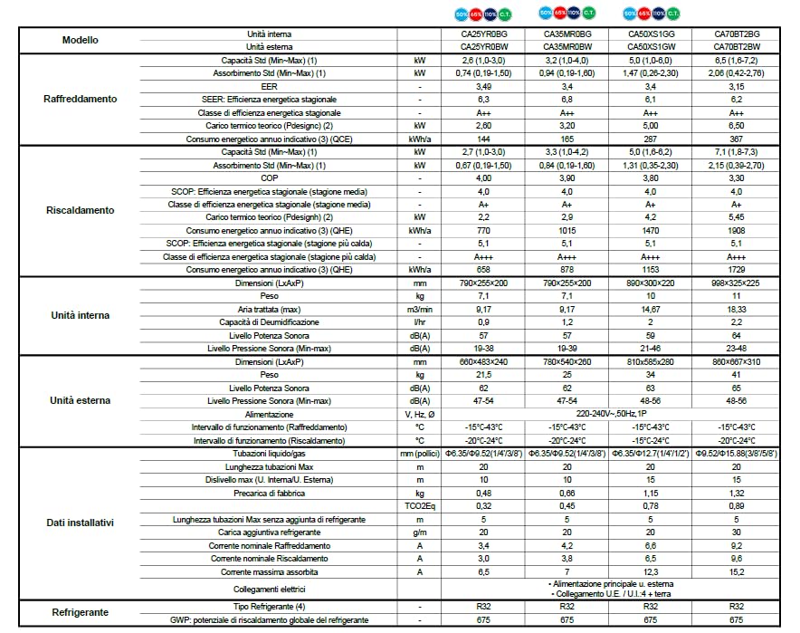 Número de modelo del producto: CA25YR4BG-CA35MR0BG-CA50XS1GG-CA70BT2BG