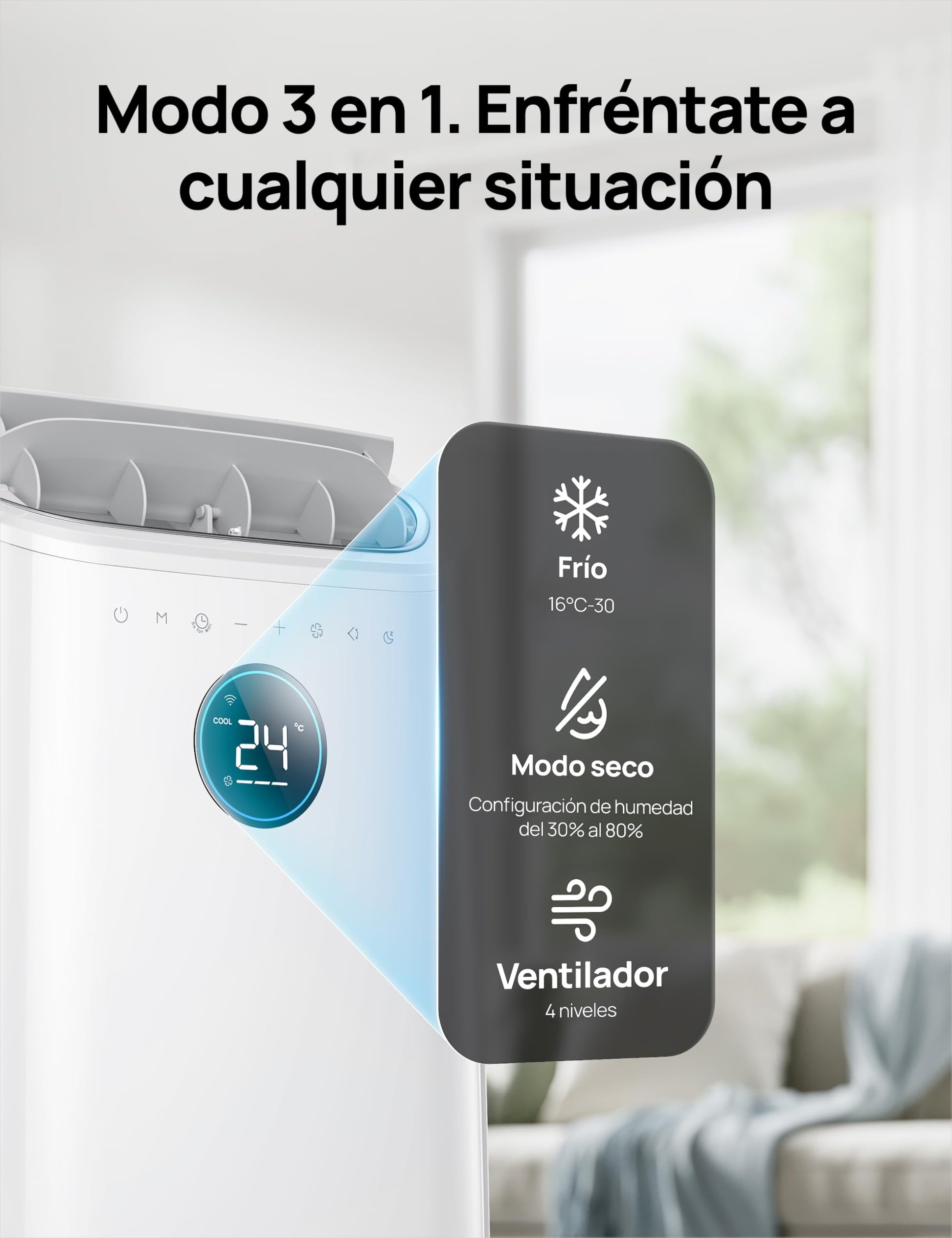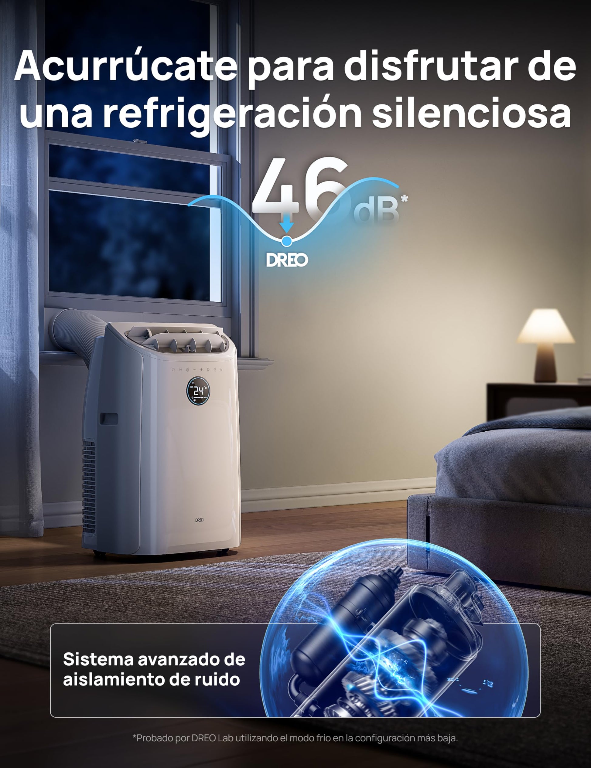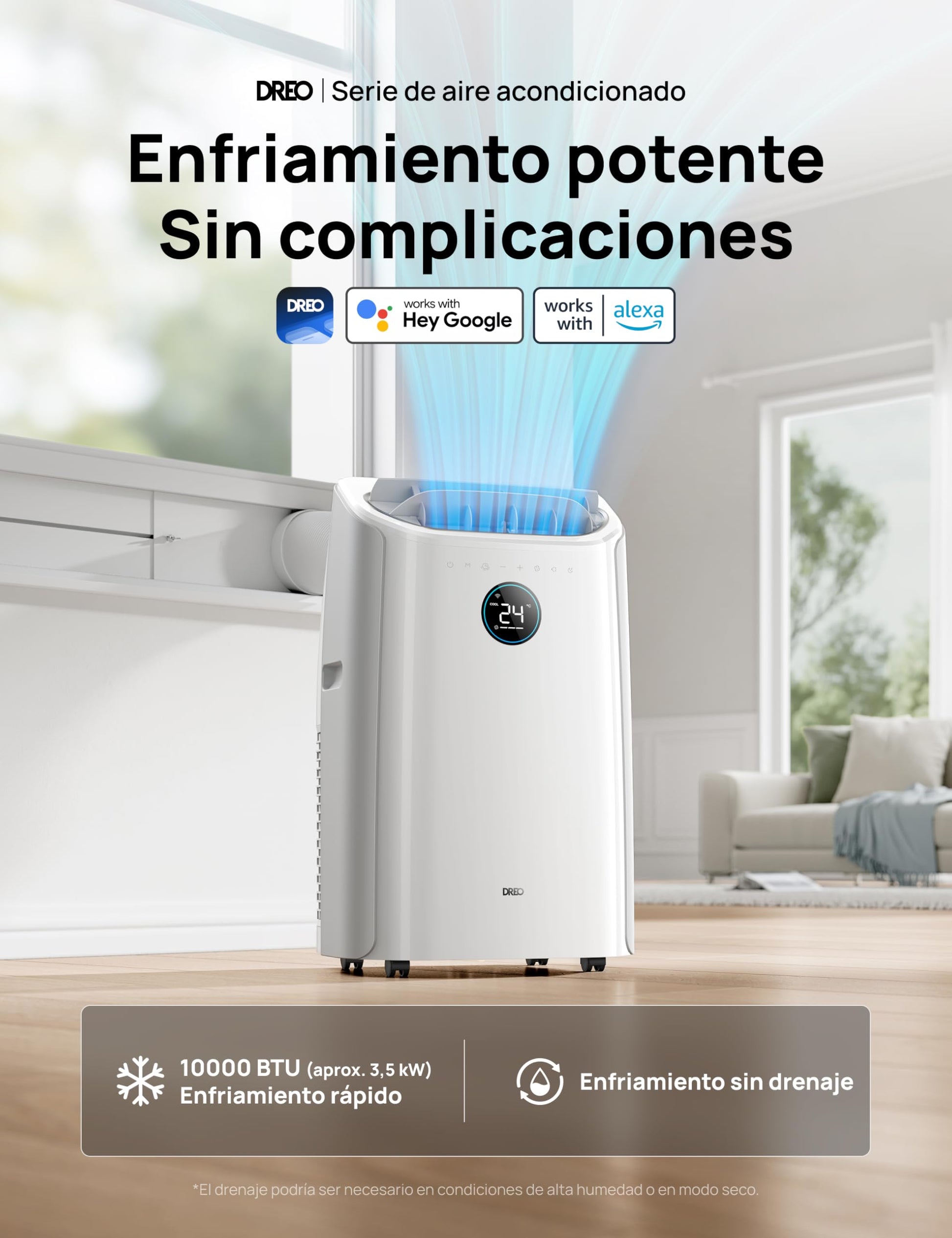 DREO Aire Acondicionado Portátil 10000 BTU - Control por App/Voz, Silencioso, Sin Drenaje, Temporizador 24h, Deshumidificador