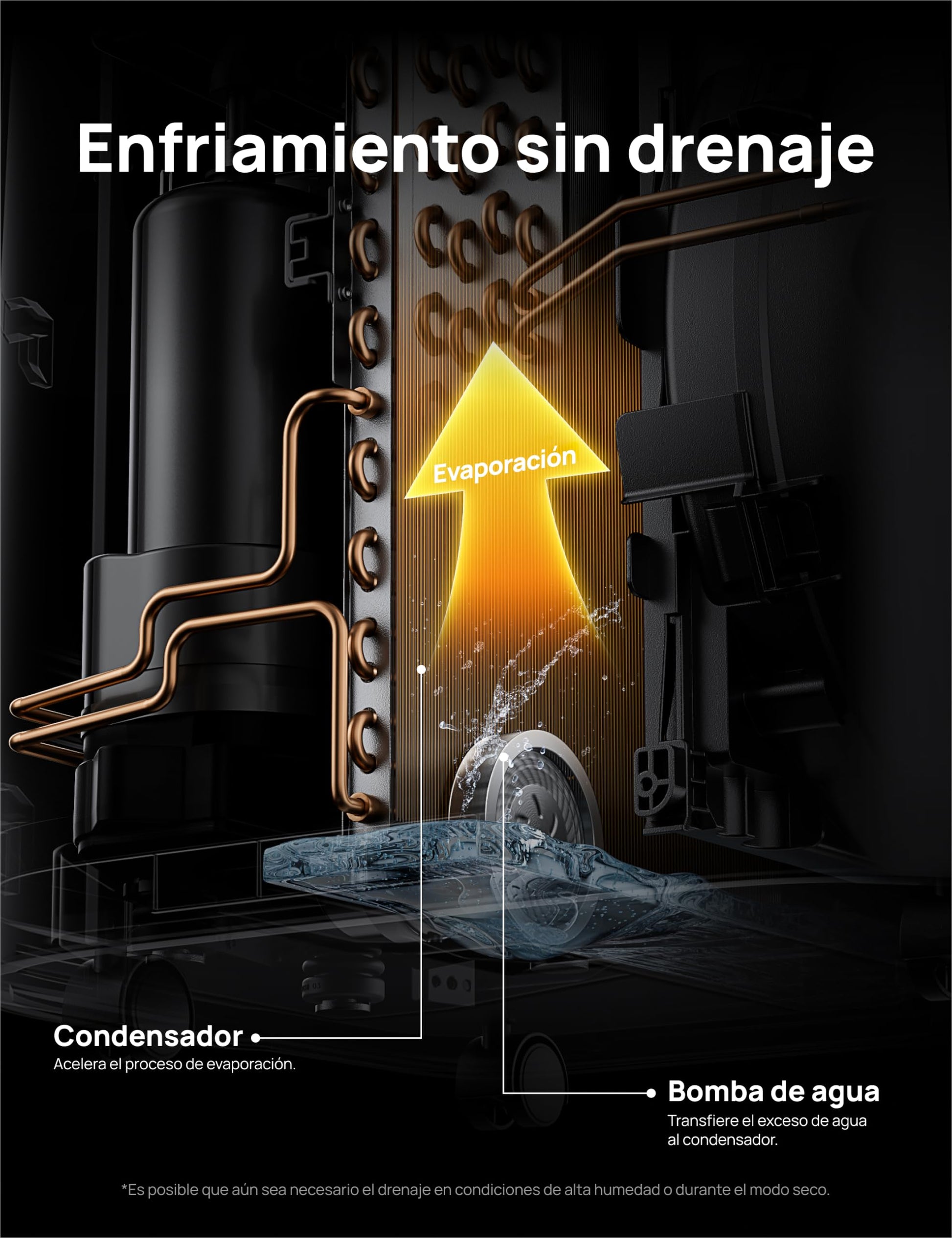 - Sin drenaje con potente refrigeración cuando la humedad es inferior al 85 %: Aporte aire fresco ininterrumpido a su habitación. Gracias al nuevo diseño del aire acondicionado DREO, un condensador especial y una bomba de agua ayudan a transferir el exceso de agua y reducen la necesidad de drenaje en comparación con los aires acondicionados de pie tradicionales.